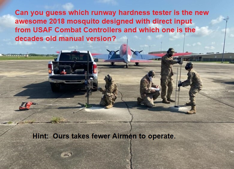 A portable Runway Hardness Tester for USAF Special Ops that weighs 30 pounds and fits in a rucksack.